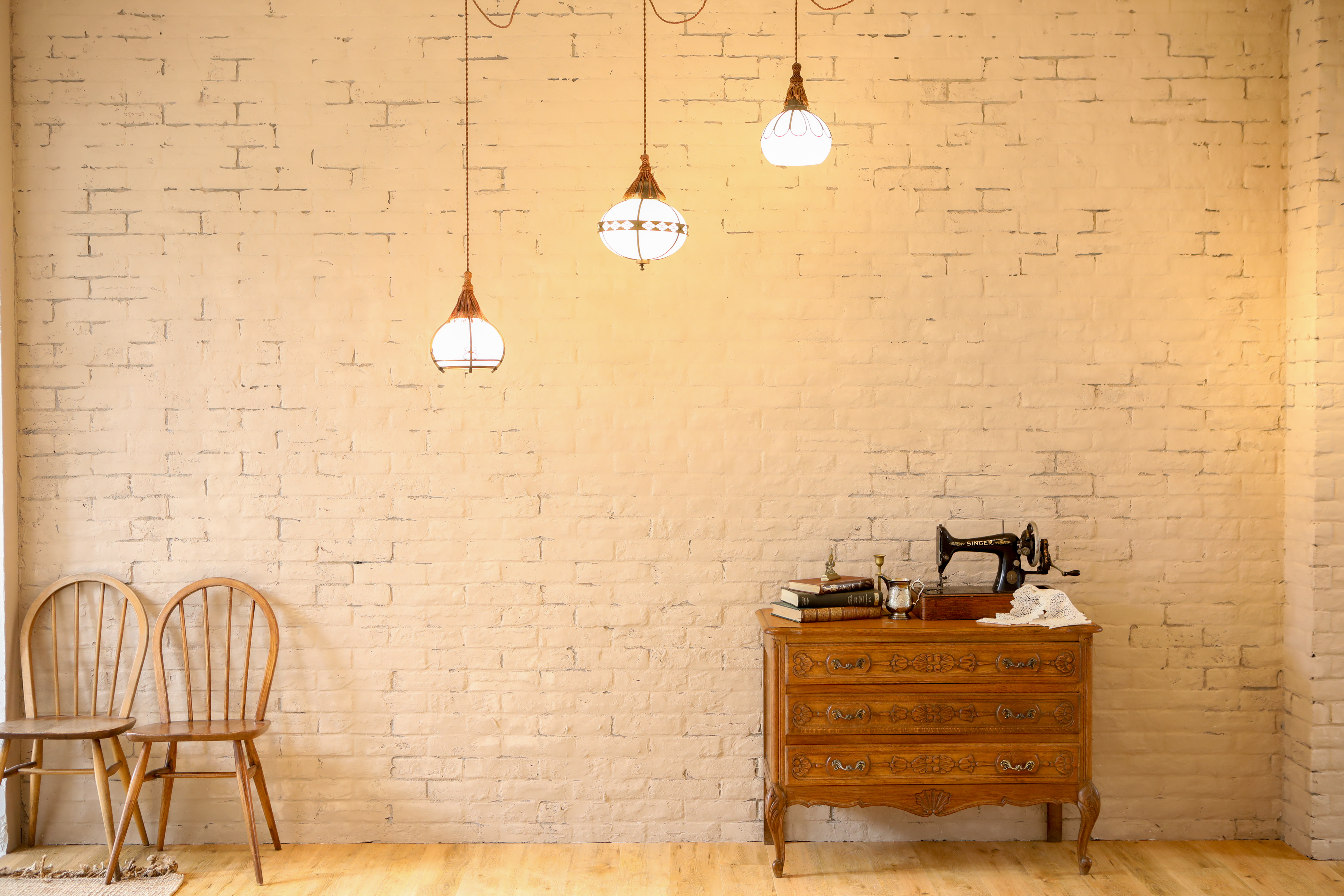 白いアンティークレンガのウォールも