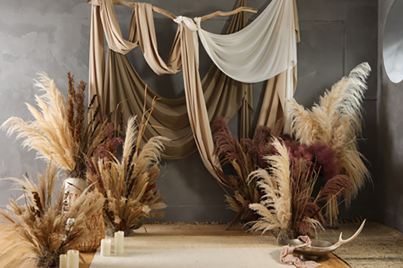 装飾のパンパスが明るい色味なので柔らかい雰囲気でもピッタリ!