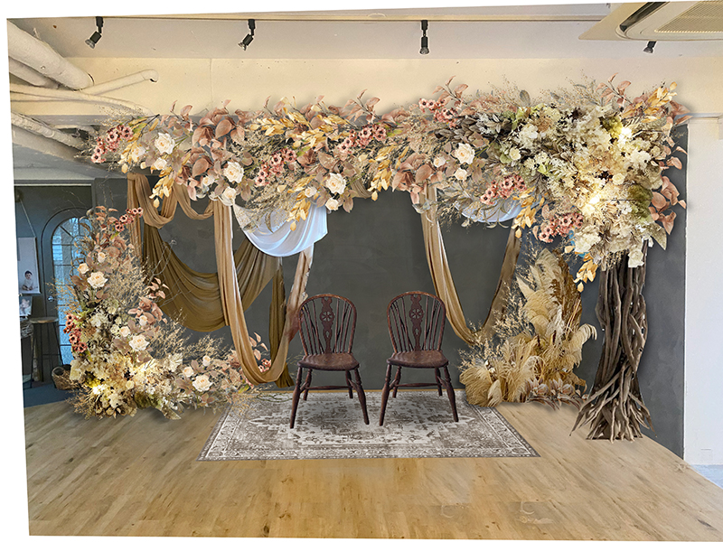 全体的にドライフラワーで敷き詰められた空間と