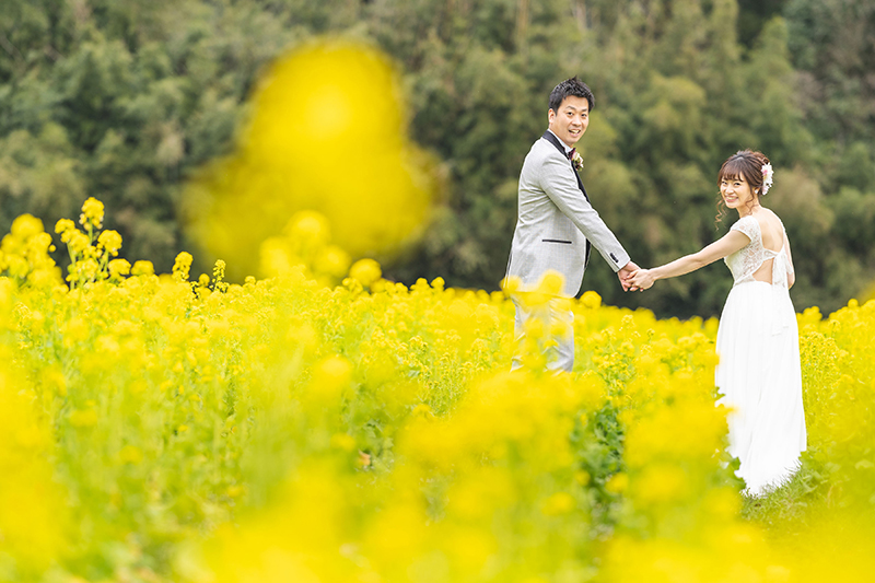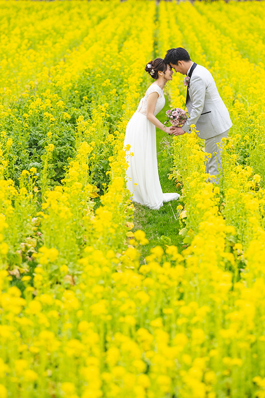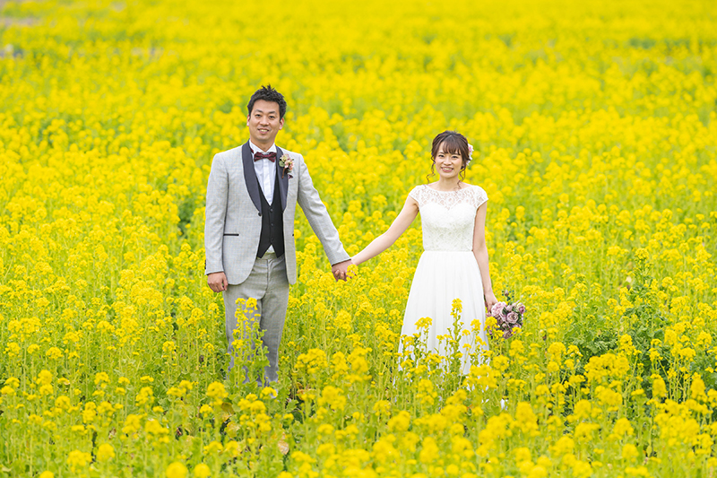 菜の花の色は、お二人を一層