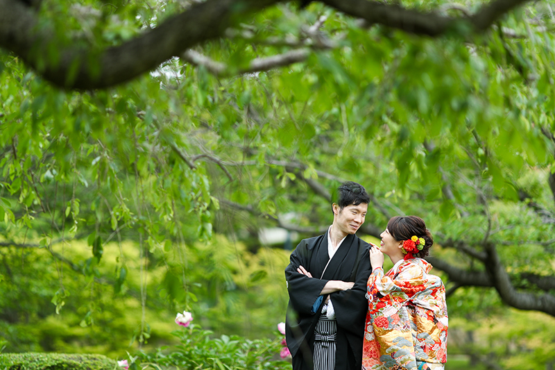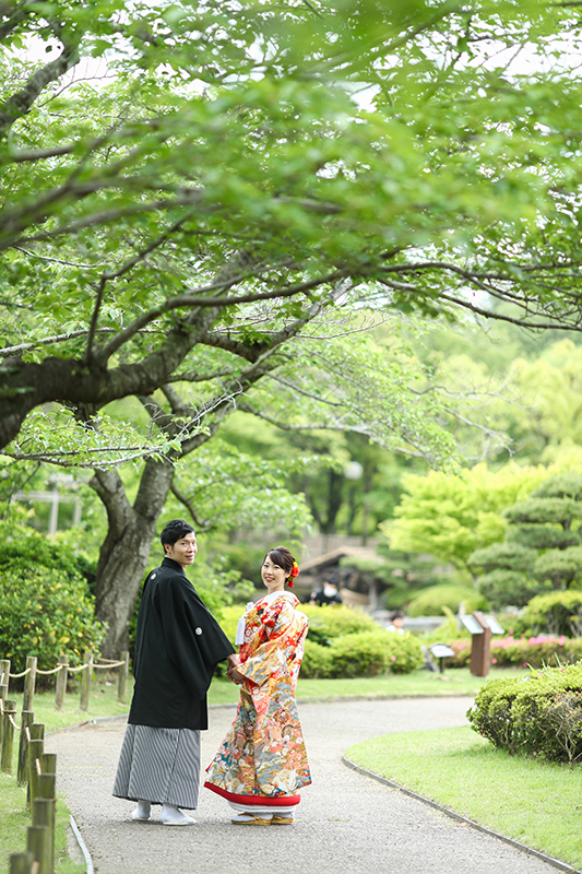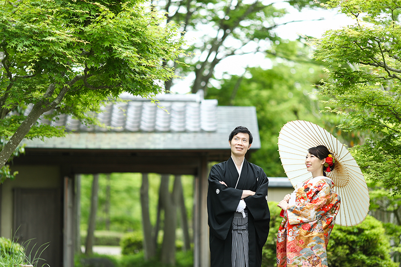 季節感溢れる風景が、晴れ姿のお二人を