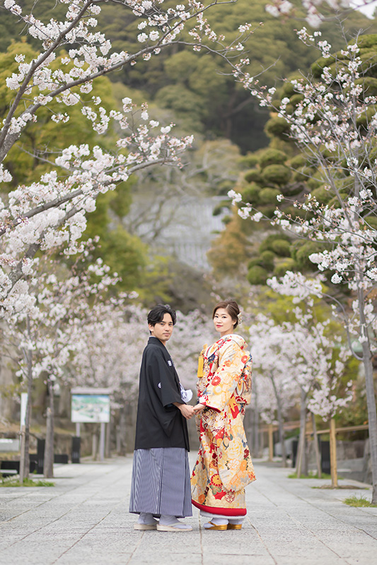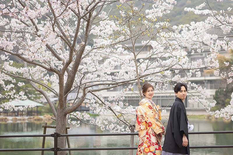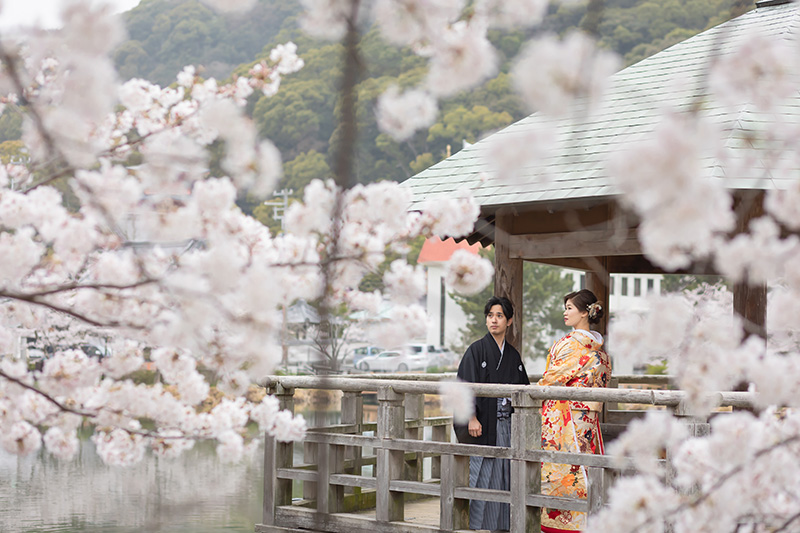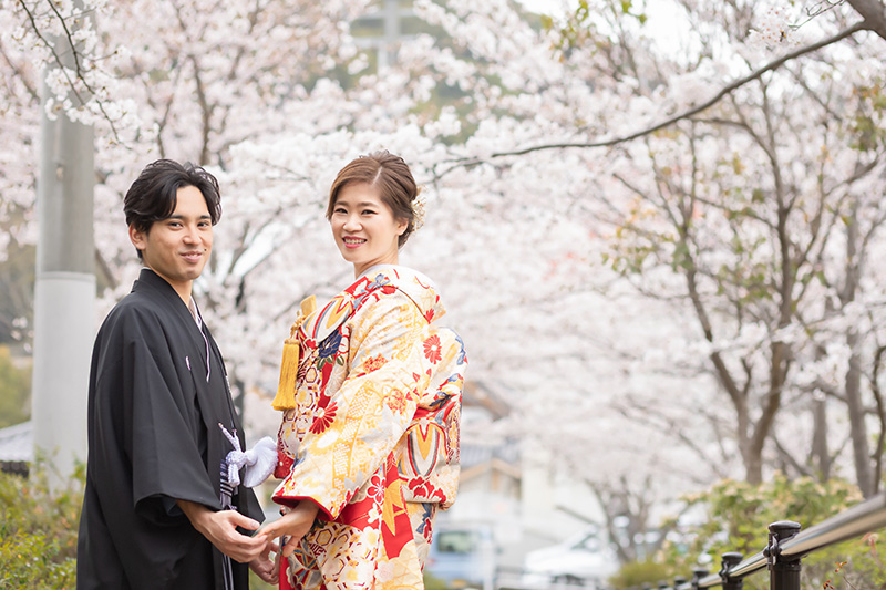 和装での桜前撮りにぴったりな