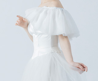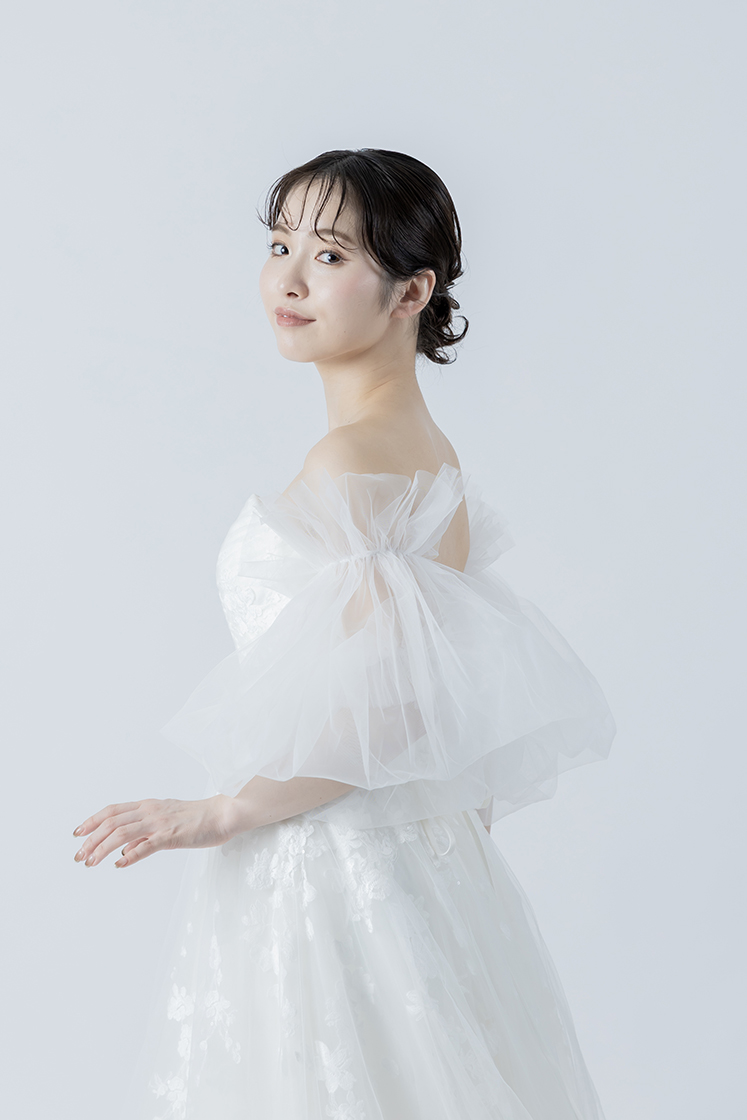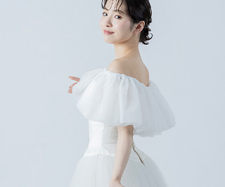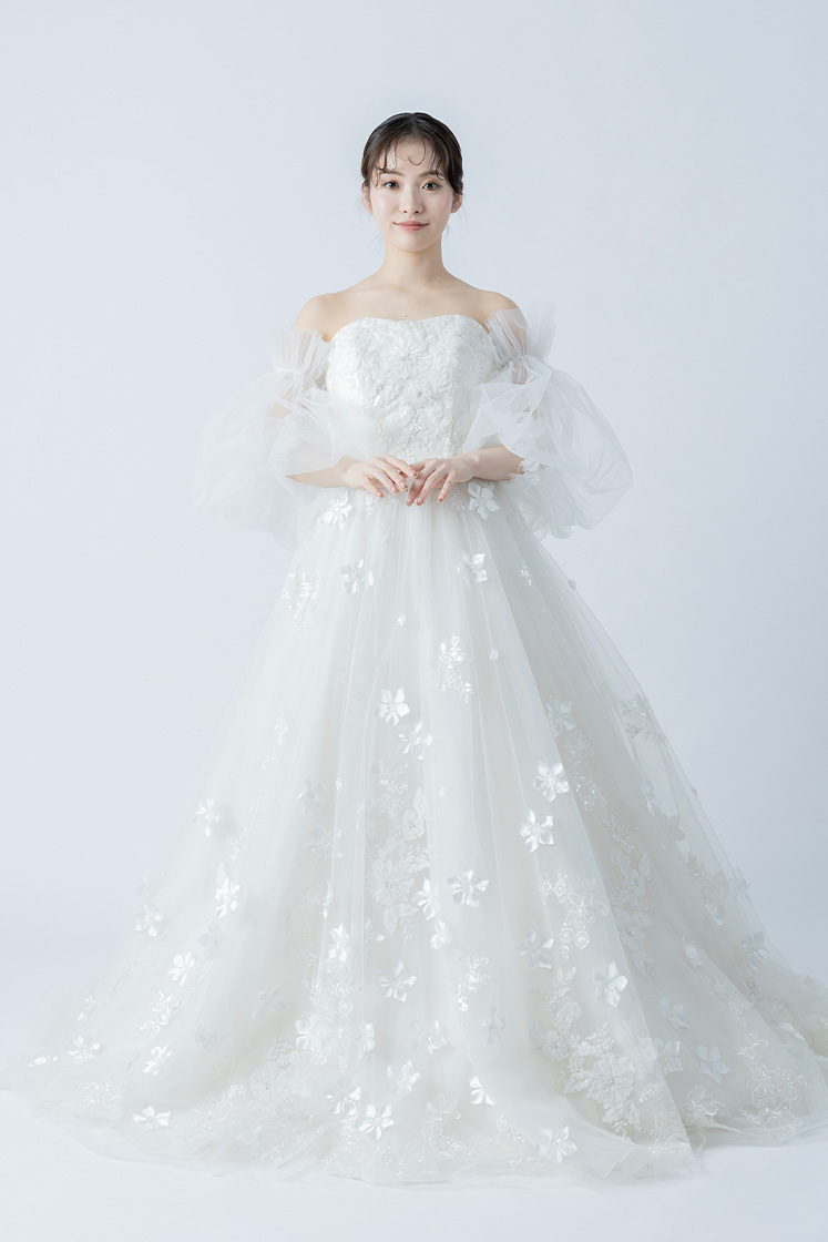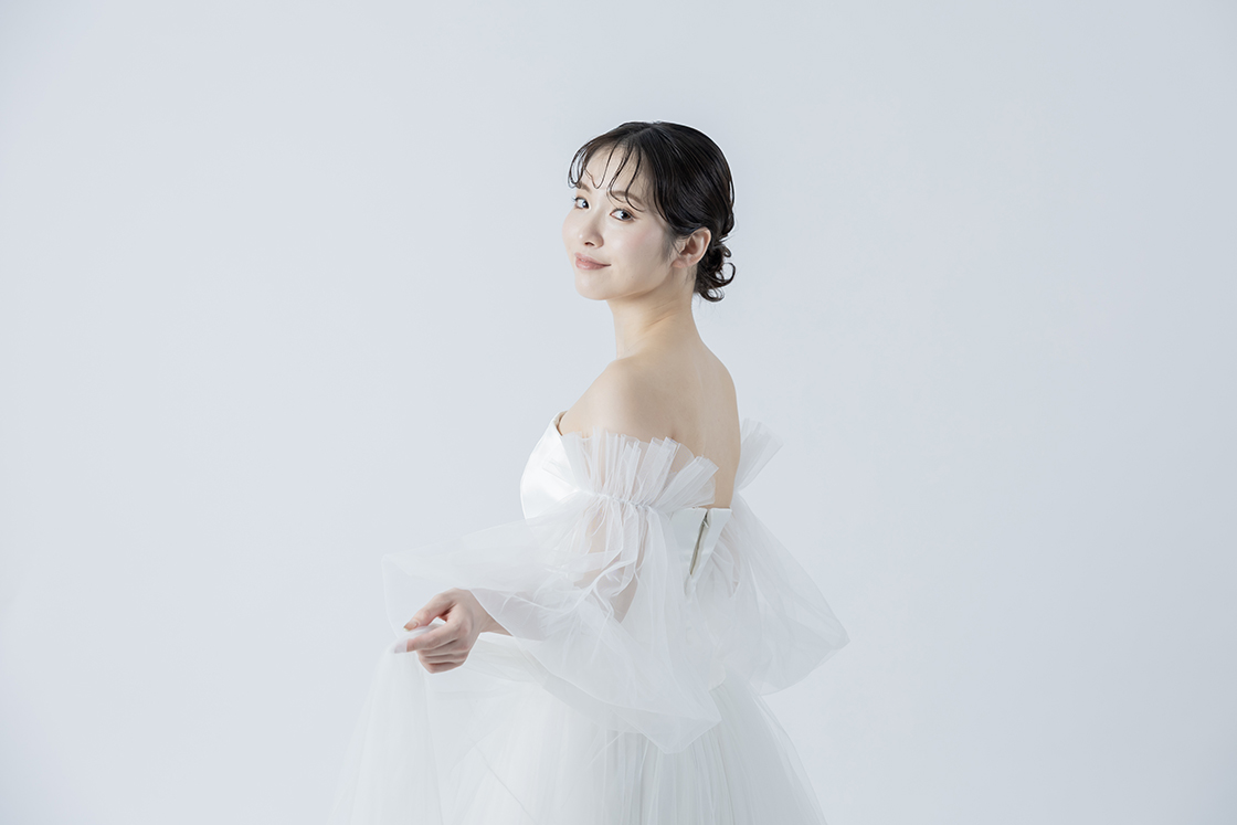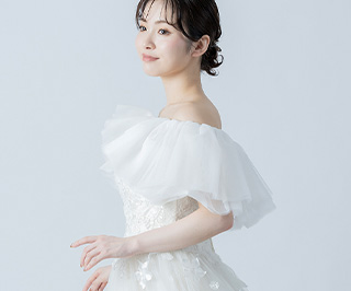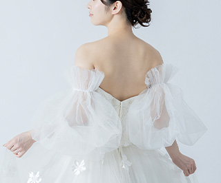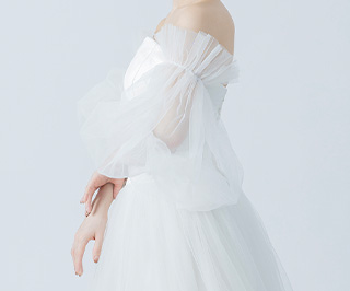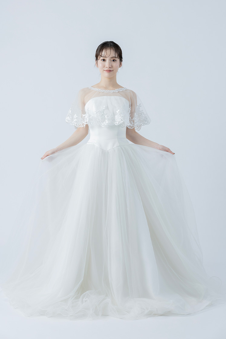 チュールが二の腕や背中をさりげなくカバーしてくれるため、露出を控えめにしたい方にもおすすめです。