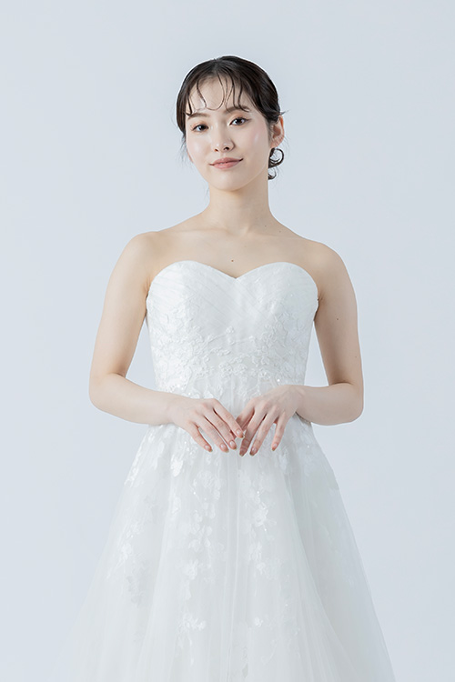 繊細なレースがドレス全体に優雅な印象をプラスし、