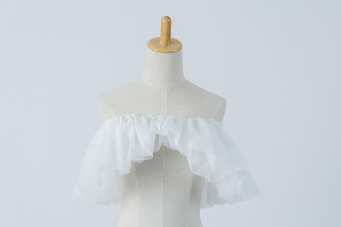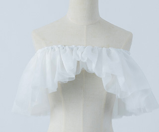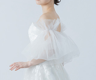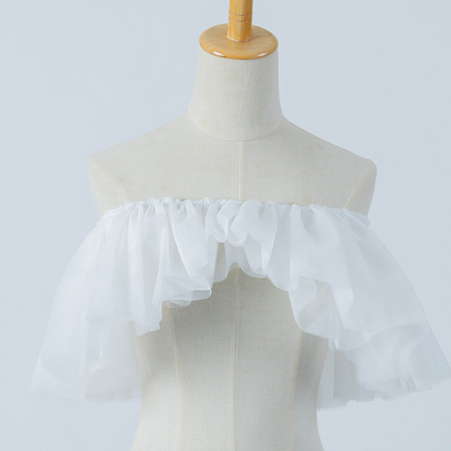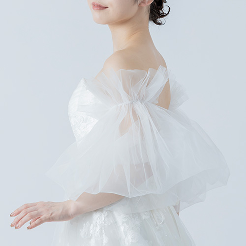 ボリュームのあるソフトチュール素材を使用した、ゴム留めタイプの付け袖ボレロです。