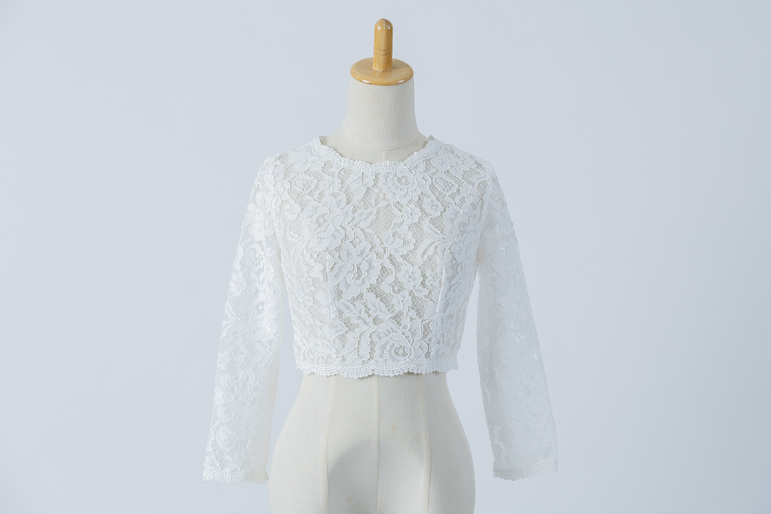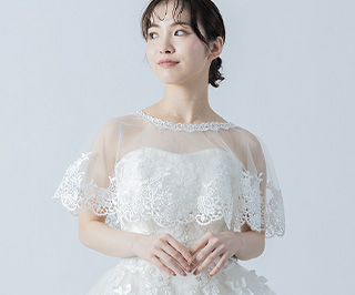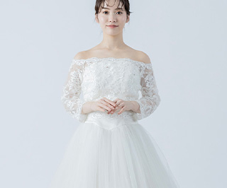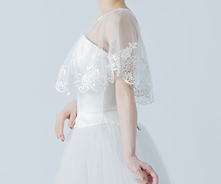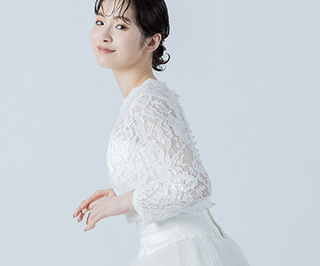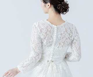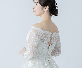 ビスチェタイプのドレスに重ねるとレーストップス風のスタイルになり、