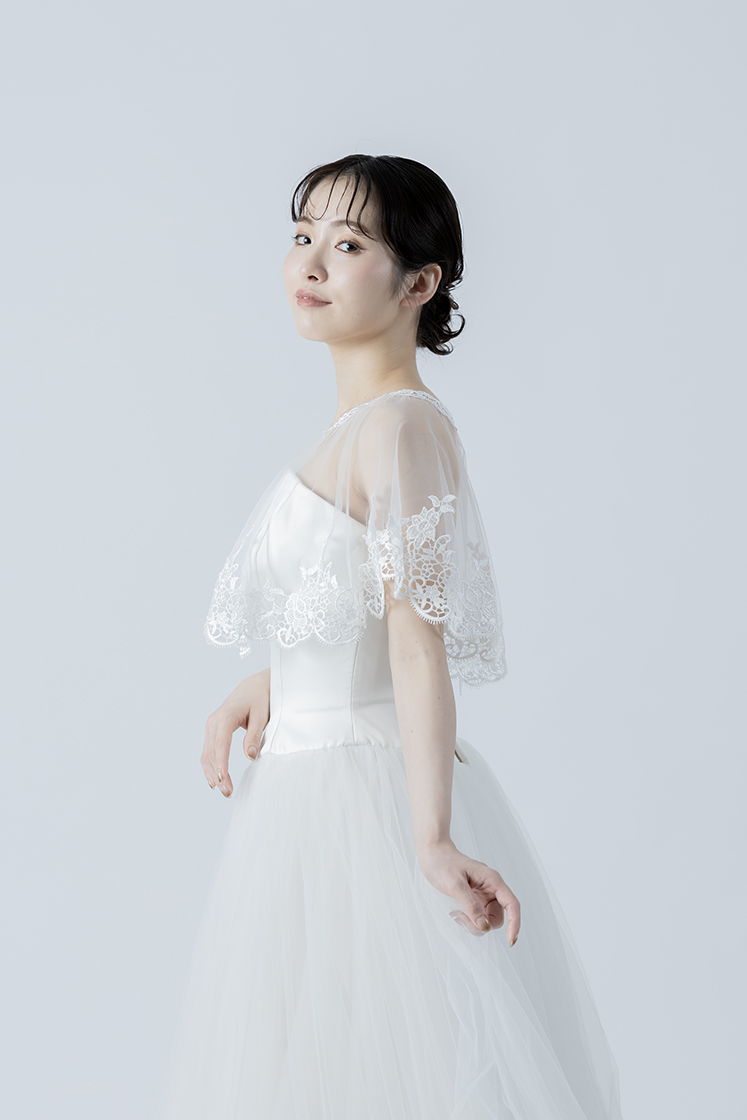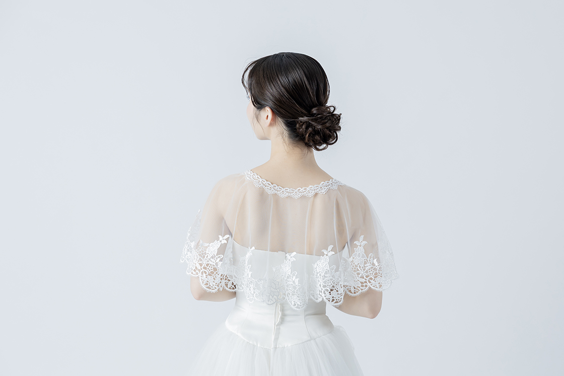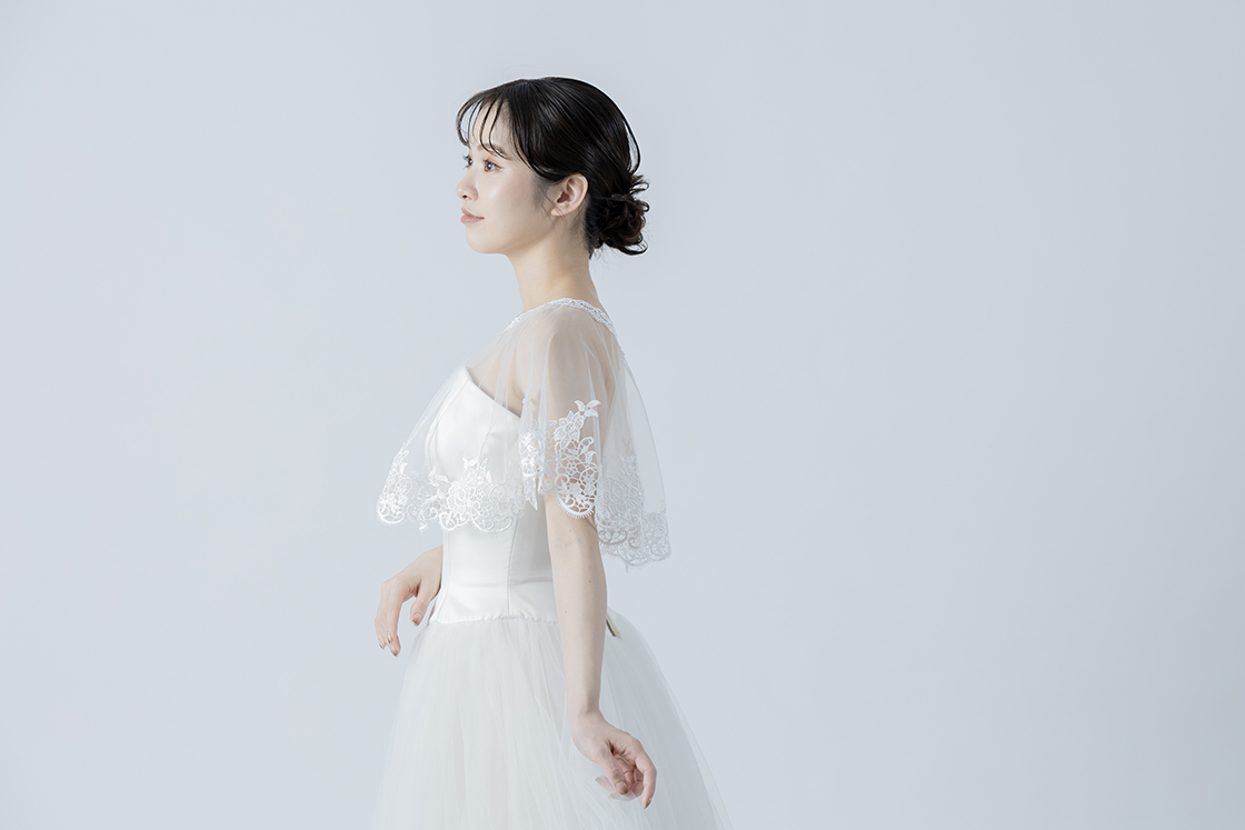 肩まわりをほどよくカバーしながらも、軽やかでエレガントなスタイリングに仕上げてくれます。