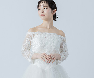 ビスチェタイプ(袖、肩ひもなどが無いドレス)に追加することで、ロングスリーブドレス風のコーディネートに。