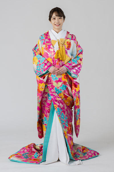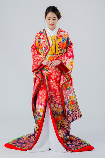姫路店 色打掛 衣装1点につき +16,500yen(税込)で 姫路店の色打掛からもお選びいただけます。 姫路店の衣装をご試着いただく際は、1回4,400yen(税込)を頂いております。 ?色打掛の種類について